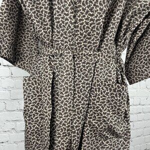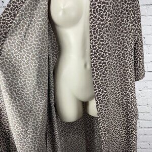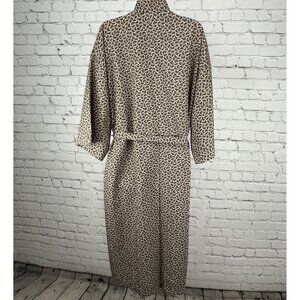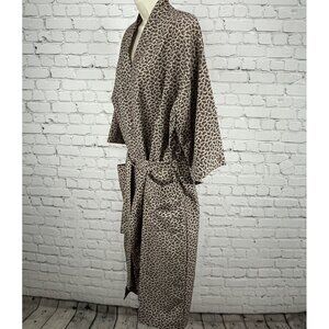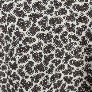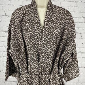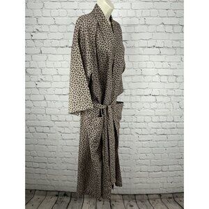 This vintage Bill Blass robe features a cream paisley pattern on a lightweight fabric, making it perfect for evening wear or lounging at home. The robe is designed in a size O/S, suitable for various body types, with a chest size of 52 inches and a shoulder to hem length of 49 inches. It also includes a convenient pocket and a tie closure for a comfortable fit. This elegant and versatile piece is a unique addition to any wardrobe, offering both style and comfort in a timeless design.
