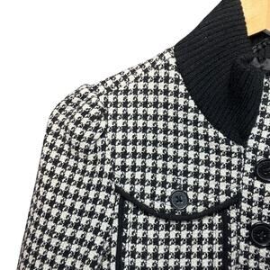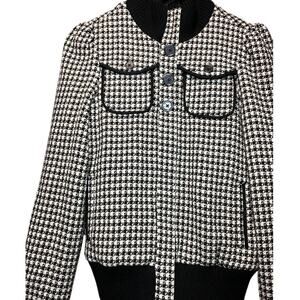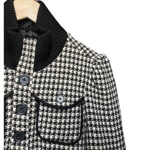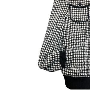 VTG Billabong Black/White Houndstooth Tweed Wool Blend Full Zip Puffed Shoulder