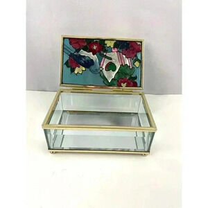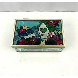 VTG Bird Birdhouse Stained Glass Trinket Box Joan Baker Designs 1994