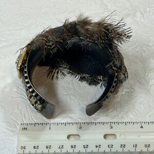 VTG Bird Feathered Crystal Rhinestones Brass Metal Bracelet Adjustable 6.5"