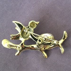 Rare GERRY brooch vintage bird with nest on branch and faux pearl eggs.
