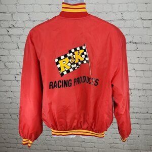 VTG Birdie Racing Products Red Snapped Bomber Jacket USA Made Retro Large L