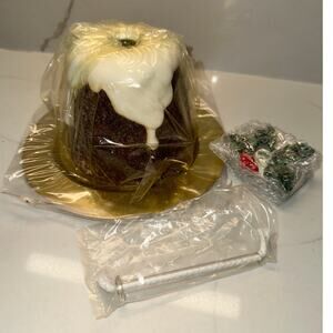 VTG. Bisque Porcelain Oil Lamp Solid Brass Plate Decorative Plum Pudding Dept 56