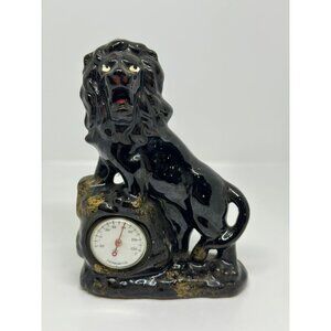 VTG Black Ceramic Lion Figurine With Thermometer Made In Japan MCM Decor Style
