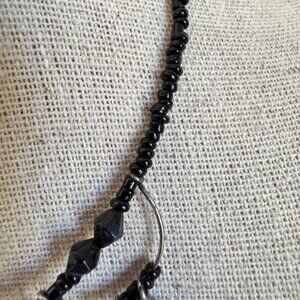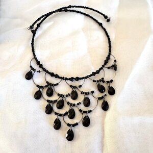 VTG Black Faceted Crystal Silver Wire Scalloped Design Gothic Size 16" Long