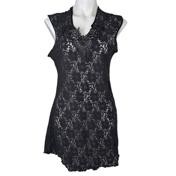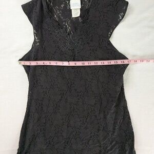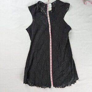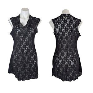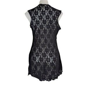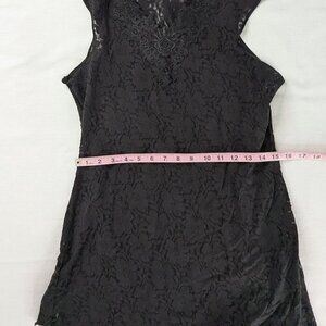 VTG Black Floral Lace Sheer V Neck Mini Slip Dress