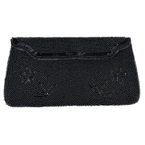 Vintage Ladies Soft Body Black Clutch. Fully Beaded with delicate flower design. Lined in black satin with one pocket and metal snap. Perfect with an LBD- A little black dress. Excellent condition.
