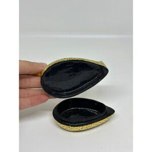 This vintage black and gold lacquer trinket box features a duck/goose design, ideal for mid-century modern decor enthusiasts. Perfect for storing small treasures or as a decorative piece.