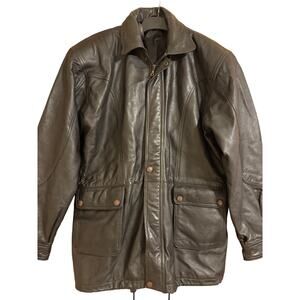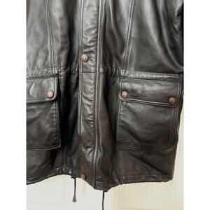 VTG Black Leather Jacket Overcoat Men’s 56 XXL Excellent Condition