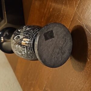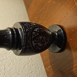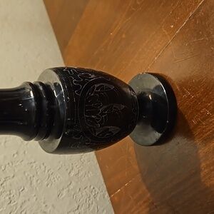 VTG Black Onyx Floral Etched Castlecore Outdoor Patio Vase