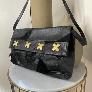 VTG Black Patchwork Boho Leather Suede 80s Shoulder Crossbody Bag Glam Studio 54