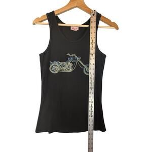 VTG Black Ribbed Tank RHINESTONE Motorcycle TrampStamp SIZE LARGE Raquel Biker