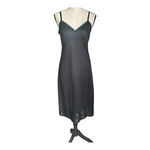 VTG Black Satin Lace Slip Dress Nightgown 90s Y2K Midi Lingerie Goth Romantic S