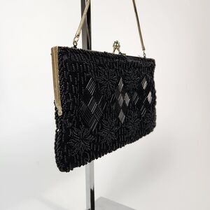 VTG Black Small Beaded Purse Womens Handbag 1920s Flapper Gir Made In Hong Kong
