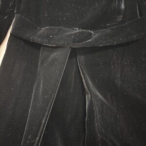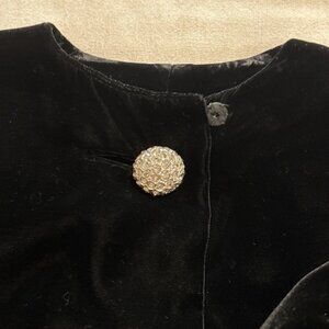 VTG Black Velvet Duster Coat Rhinestone Buttons Long 60's Luxury Romantic Sz S
