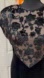 Beautiful burnt out velvet detail over nude bodice Detail is accented by metallic edging of applique outlines