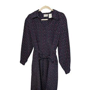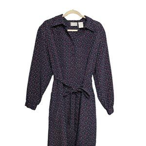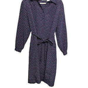 VTG Blair Ladies Midi Polka Button Down Accented Dot Dress SZ Large Petite