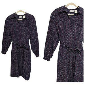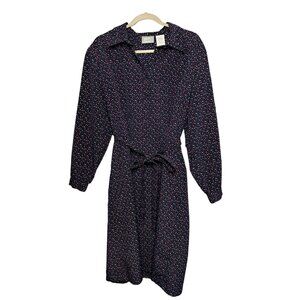 Vintage Blair ladies midi dress featuring a charming polka dot pattern, button-down front, and accent details. This stylish dress is perfect for any occasion, offering both comfort and fashion in size large petite.