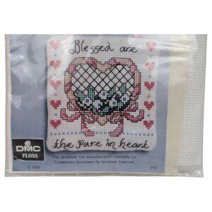VTG Blessed Are the Pure in Heart Heart Stealers Kit DMC Floss 1989 Cross Stitch