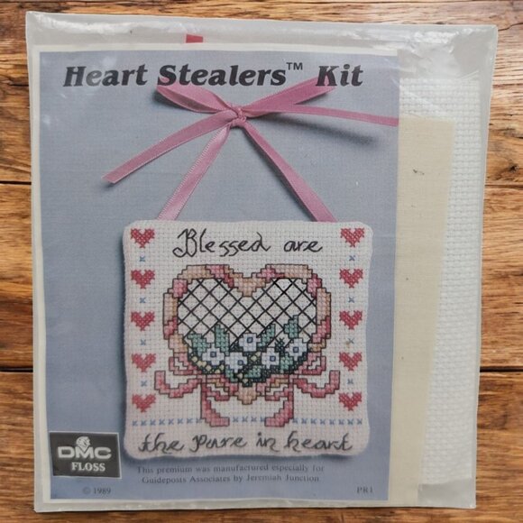 VTG Blessed Are the Pure in Heart Heart Stealers Kit DMC Floss 1989 Cross Stitch