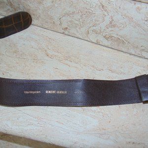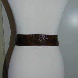 Vintage " Bloomingdale's " Chocolate Brown Patent Genuine Leather Gator Embossed Women's Belt Made in Italy