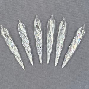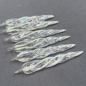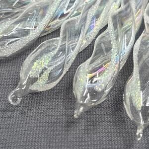 VTG Glass Icicle Ornaments Set of 6 Clear Iridescent Glitter Twist Christmas Decor