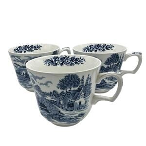 VTG Blue Made in England Teacups Country House Floral Set of 3 Excellent preowned condition