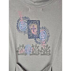 VTG Blue Fish Oversized Green Tunic Dress With Abstract Print Button Details OS