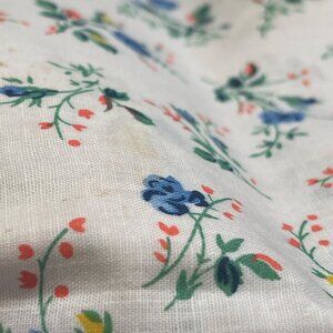 Vintage blue floral napkins, featuring charming white and orange accents. Perfect for upcycling and crafting projects. Note: includes stains. Ideal for adding a touch of retro flair to your creative endeavors.