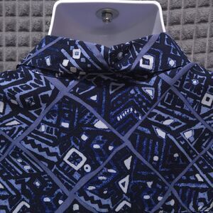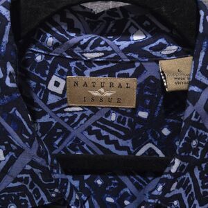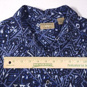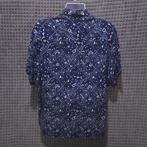 VTG Blue Geometric Hawaiian Shirt Mens Lg SOFT Natural Issue Short Sleeve Button
