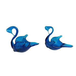 VTG Blue Glass Swan Trinket Candy Dish Bowl 6” Mid Century Modern Lot of 2
