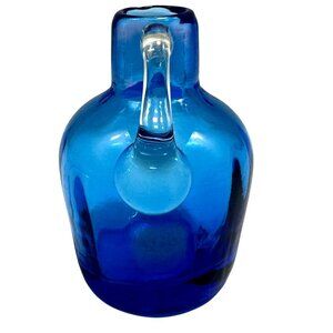 VTG Blue Handblown Glass Mini Jug Pitcher Vase 4 inches Applied Clear Handle
