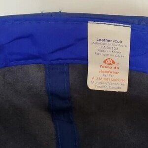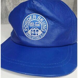 VTG Blue Leather Hat Revelstoke CAT skiing zip strap embroidered cap