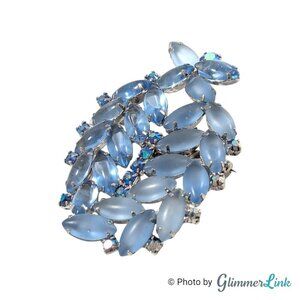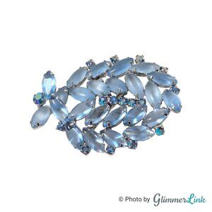 VTG Blue Navette & Aurora Borealis Rhinestones Silver Tone Mid Century Brooch