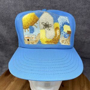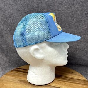 VTG Blue RV Trailer Camping Sunrise Trucker Snapback Hat 1980s 1990s Cap Mesh