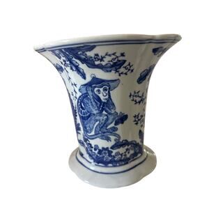 VTG Blue and White Oriental Monkey Vase.Hear no evil speak no evil Chinoiserie