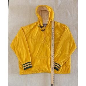 This vintage Boathouse jacket is a custom-made parka designed for wind and water protection. Made with nylon outer shell material and polyester lining, this solid yellow jacket features a zip closure and a regular fit. Perfect for casual occasions in winter, fall, or spring, this Varsity-style jacket is suitable for walking and hiking activities. Machine washable and made in the United States, this size Large jacket is a stylish and practical choice for outdoor adventures.