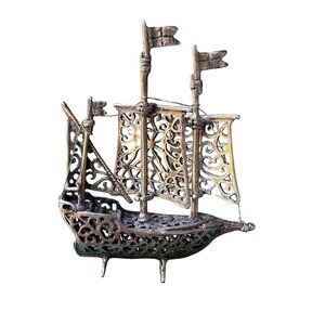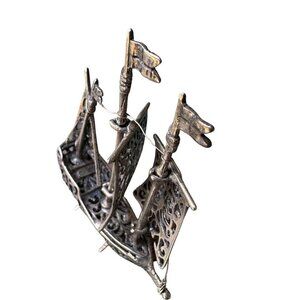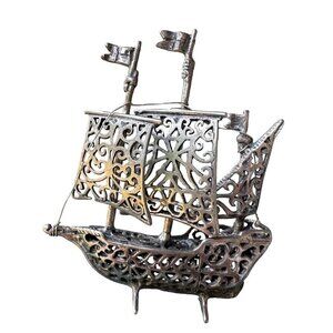 VTG Boat Ship Sculpture Ornate Filigree Nautical Italy 925 Sterling Silver 24.2g