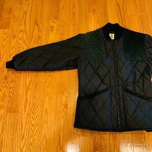 VTG Bob Allen Black Puffer Quilted w/Green Suede Shooting Jacket Mens Large