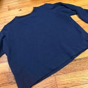 Bobbie Brooks navy blue sweater with embroidered pumpkin and turkey design