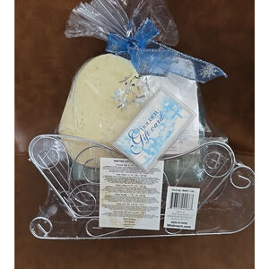 VTG NOS Body Nature Christmas Body & Bath Winter Crystal Wire Basket Gift Bath Set. Some pf the plastic is torn