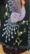 Stylish black linen like cardigan jacket with vibrant peacock embroidery. Features colorful bird design in purple, green, and white.