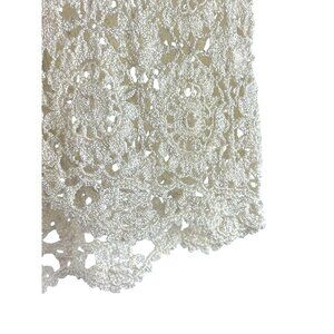 This vintage hand-crocheted blouse features an elegant ivory design, perfect for adding a touch of boho romance to any wardrobe. Its delicate Trinchetto pattern offers a unique and timeless look.