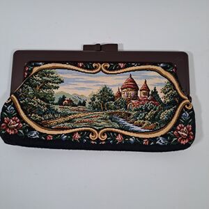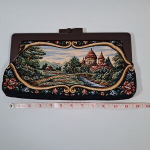 VTG Boho Tapestry Carpet Floral Handbag Purse Clutch 60s Cottagecore Brocade