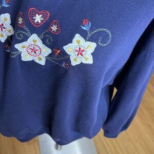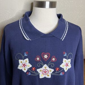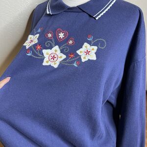 VTG Bold Spirit Sweater Womens Size XL Blue Hearts Stars Print Collar Crewneck