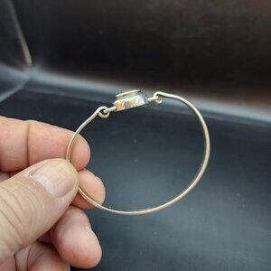 Up for sale is a beautiful vintage sterling silver Boma bangle bracelet. Bracelet has a clear to light blue faceted stone in it. I'm not sure on the stone. Some light it has a light blue hue. Otherwise, it looks clear. Bracelet has a hook style closure and should fit a 6"-7" wrist. Stone measures approx. 10mm x 8mm. Bracelet has been acid tested and is .925. Type of stone is unknown. Made In The USA!