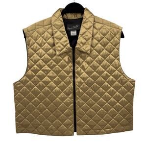 Bonnie Boynton Full Zip Collared Quilted Metallic Retro Cropped Vest Gold XL preppy contemporary classic timeless winter layering retro