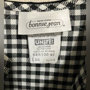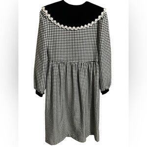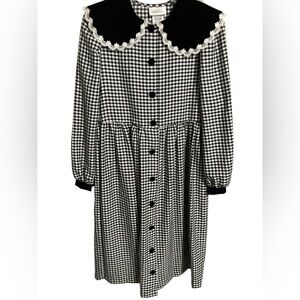 VTG Bonnie Jean Black Checkered Gigham Party Dress Velvet Lace Collar Girls Size 16 Clean Nice Preowned Condition.