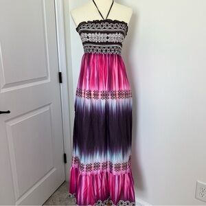 VTG Boston Proper Women’s Silk Cotton Maxi Dress Sz 8Tie Dye Beach Summer Halter