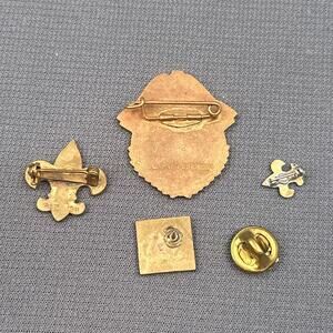 Moderate vintage wear with surface scratches, tarnish, and patina consistent with age. Chief Scout badge enamel shows minor wear. Pins retain original detail and functionality. One pin is missing backing see photos.